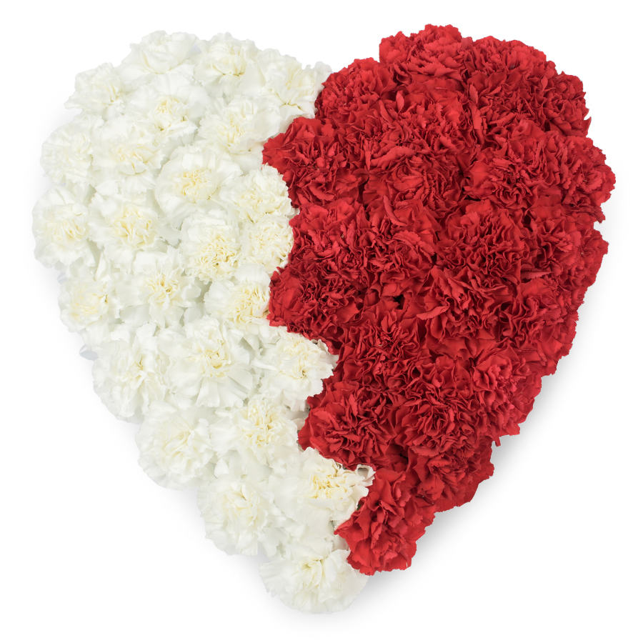 Bring warmth and elegance with our heart-shaped mixed carnations bouquet from Handy Flowers. Featuring a beautiful combination of white and red carnations, this arrangement is perfect for expressing love, sympathy, or admiration.
